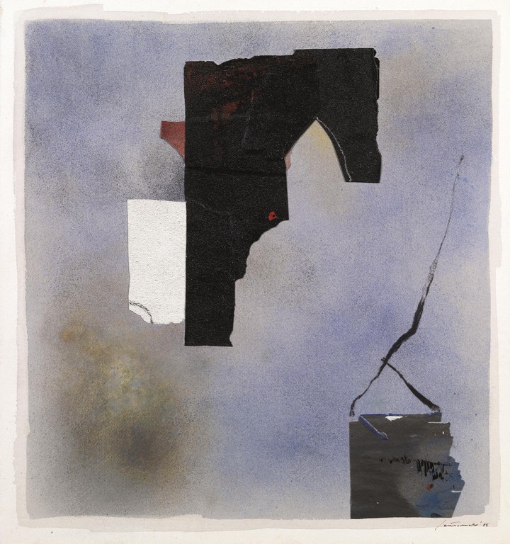 Giuseppe Santomaso (Venezia 1907 - 1990) SENZA TITOLO tempera, acquerello, olio, inchiostro e collage su carta applicata su tela, cm 61x57 firmato e datato eseguito nel 1985 Provenienza: Galleria Multigraphic, Venezia Ivi acquisito dall'attuale proprietario Opera registrata presso l'Archivio Giuseppe Santomaso con il numero SOT/1736