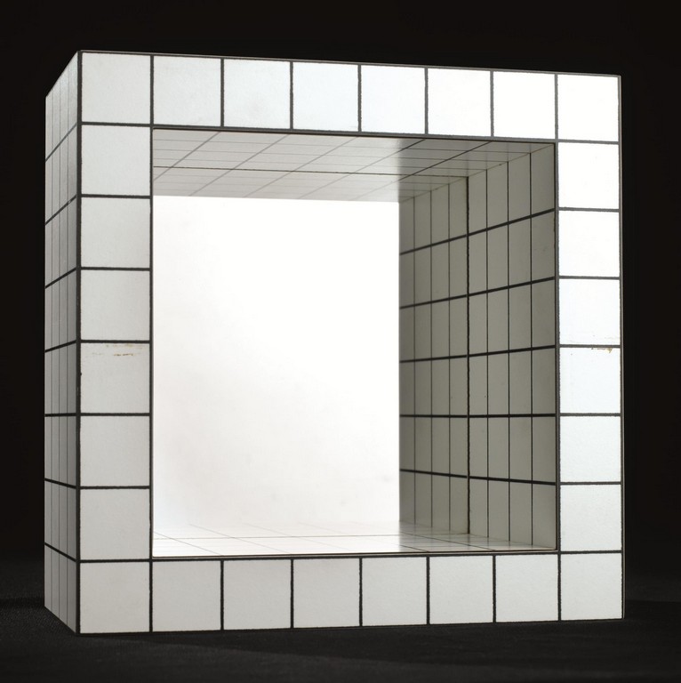 Superstudio (Adolfo Natalini, Cristiano Toraldo di Francia, Roberto Magris, Piero Frassinelli, Alessandro Poli e Alessandro Magris 1966 - 1973) SPECCHIO MISURATORE multiplo in laminato serigrafato e specchio, cm 24x24x12; es. 78/500 Opera realizzata dalla Plura Edizioni di Milano in circa cinquanta esemplari dei cinquecento previsti numerati e firmati su etichetta