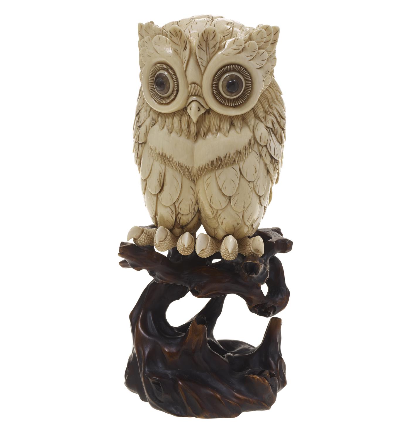 SCULTURA IN AVORIO DI MAMMUT, INIZIO XX SECOLO raffigurante un gufo cm 14x9,...
