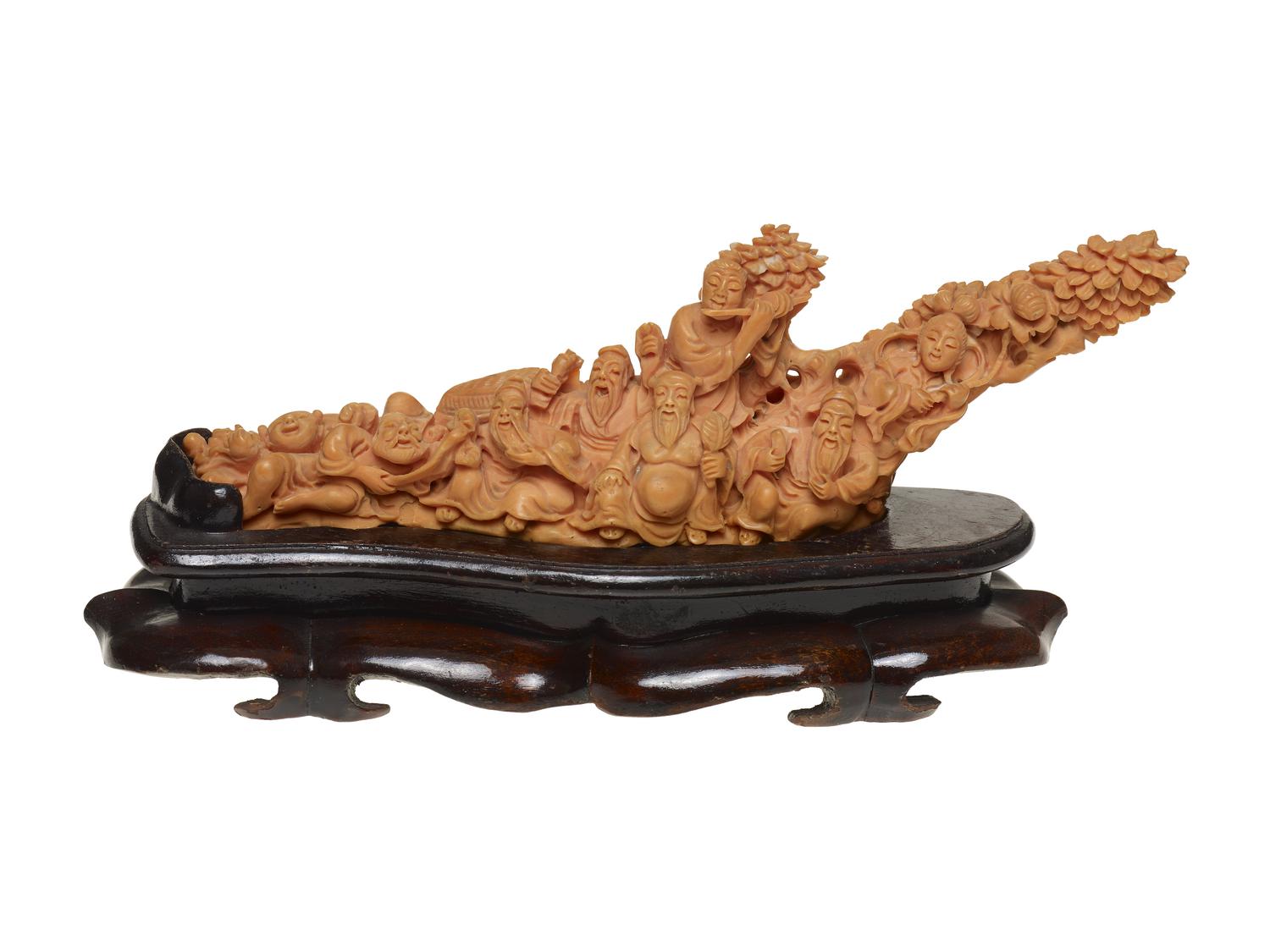 SCULTURA IN CORALLO, CINA, XX SECOLO raffigurante otto personaggi, uomini e...
