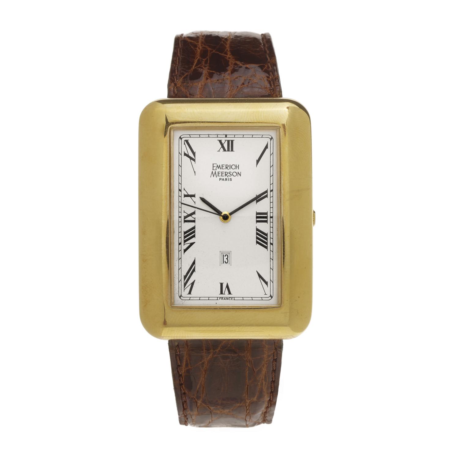 OROLOGIO DA POLSO EMERICH MEERSON, 1980 Cassa in acciaio placcata in oro...