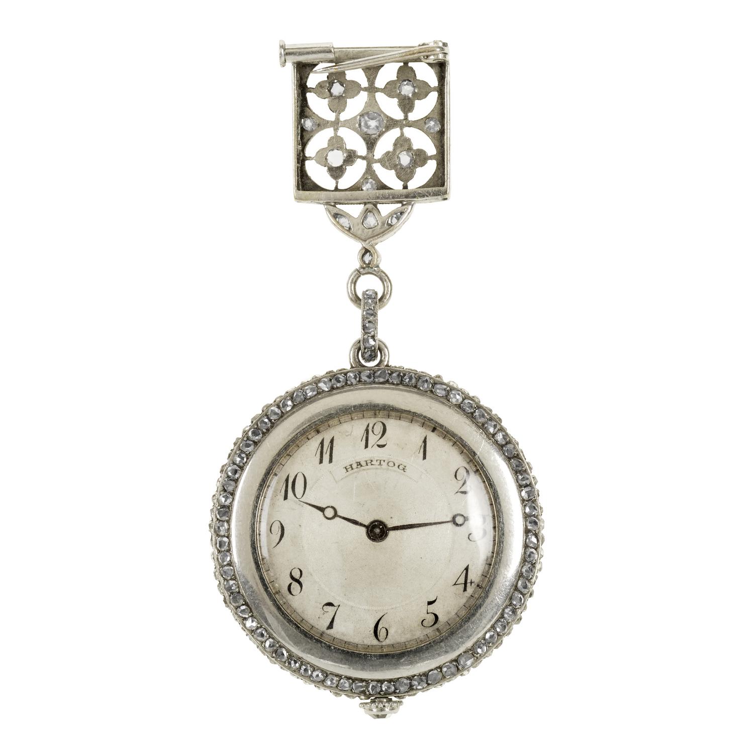 OROLOGIO DA TASCA HARTONG, FINE 1800, a carica manuale, in platino e rose di...