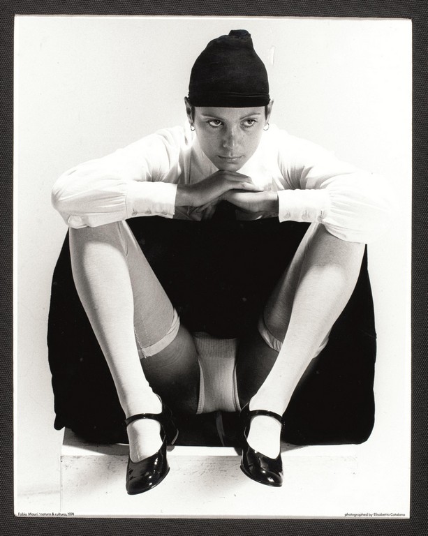 Fabio Mauri (Roma 1926 - 2009) NATURA & CULTURA stampa fotografica sali d'argento su carta baritata, cm 29,5x23,5 applicata su cartoncino, cm 47x44,5 sul retro: firmato, titolato e datato eseguito nel 1973-74 La fotografia è stata scattata da Elisabetta Catalano