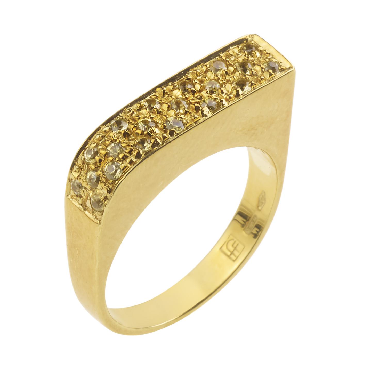 a fascia squadrata e pavé di zaffiri gialli per ct 0.4 circa, punzone 750, mis 15, g 7,5