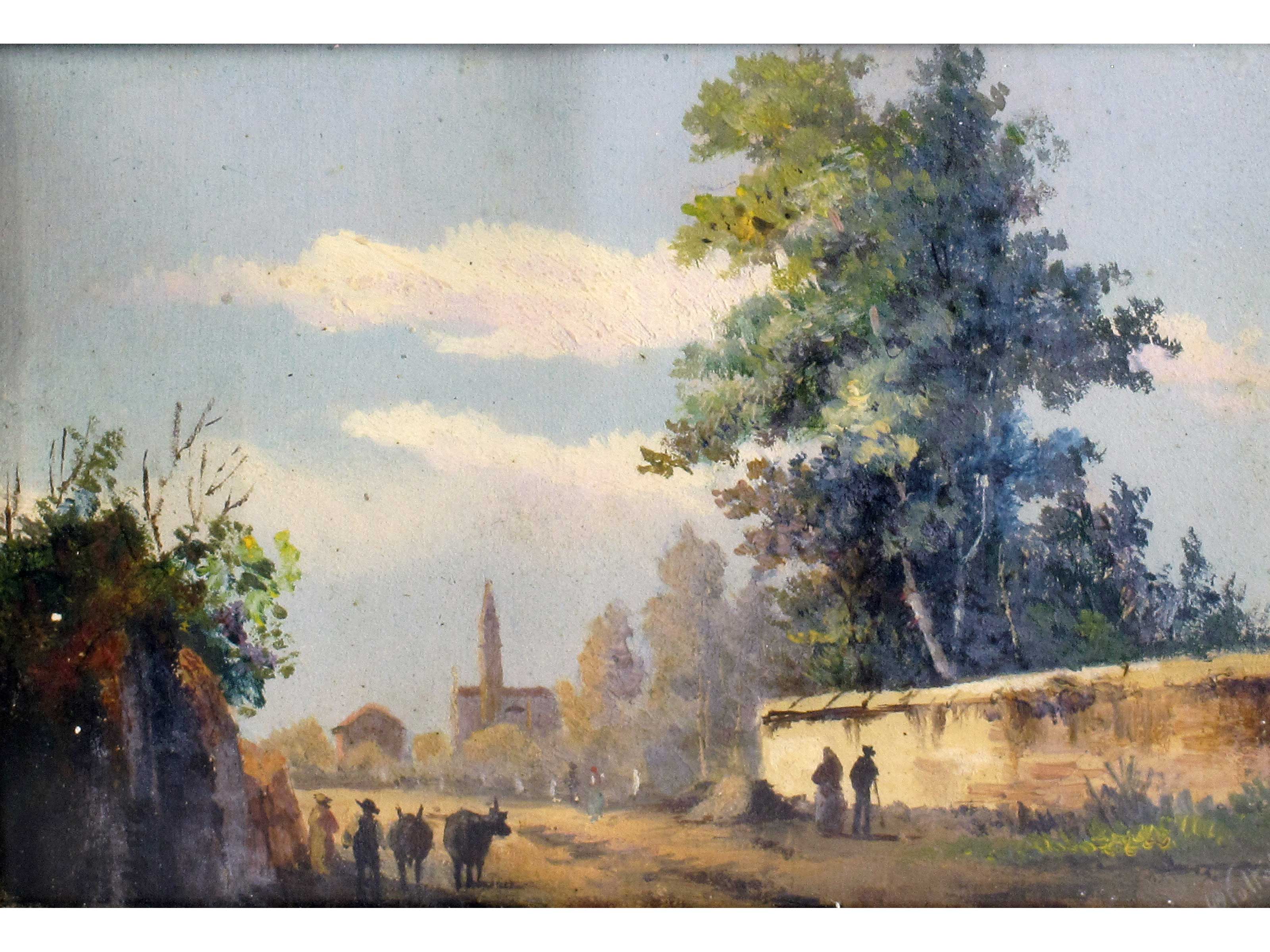 Firma illeggibile (XIX secolo) Paesaggio Acquarello su carta Firmato Misure 14x20,5 cm