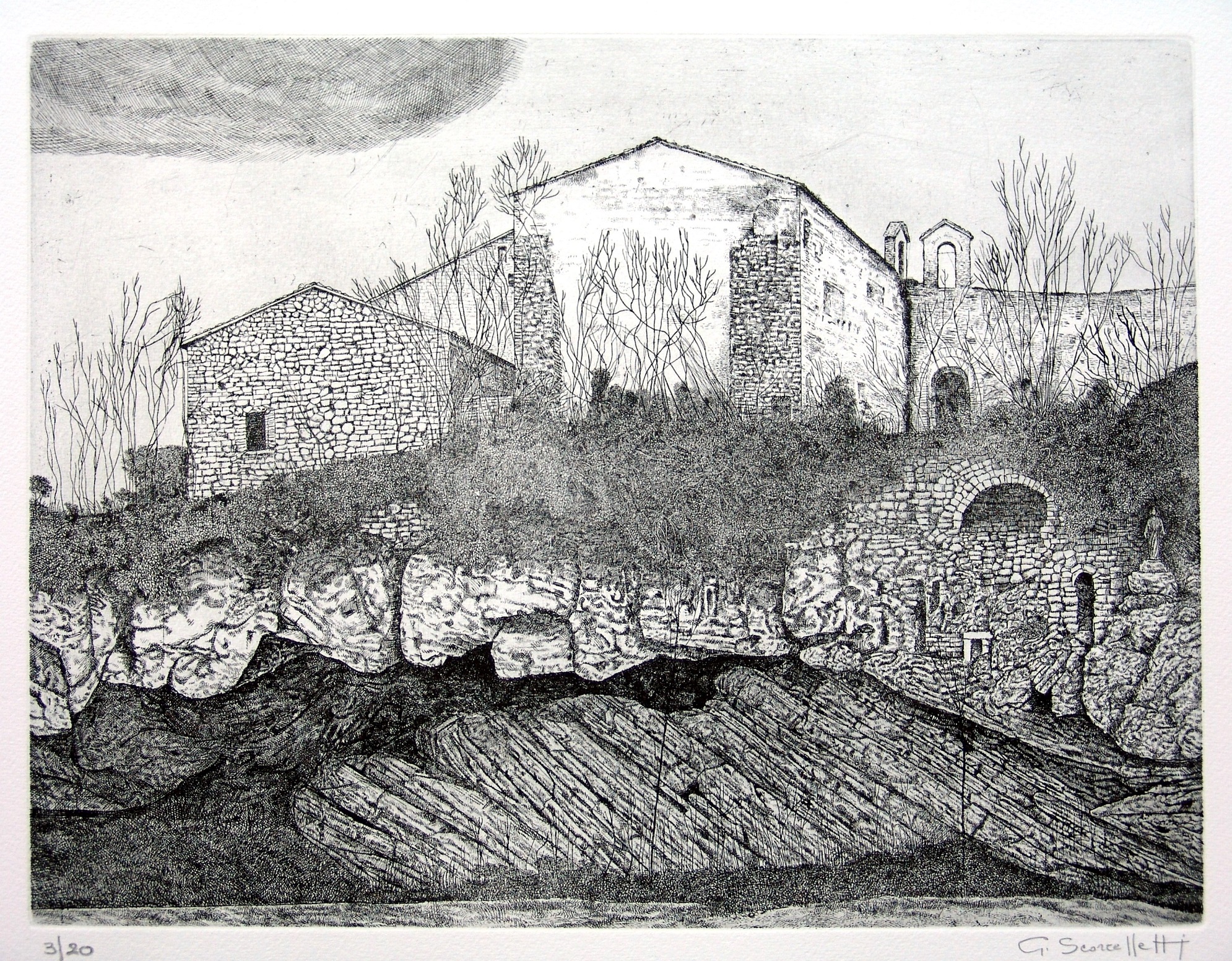 certificato di autenticità Picenum, opera pubblicata in "Giancarlo Scorcelletti, le acqueforti 1988/2004" edizione Fondo Don Maurizio Fileni, 2004