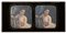 Dagherrotipo stereoscopico acquerellato. Doppia lastra montata con vetro laccato in nero con filettatura dorata con passe-partout rettangolare. Montaggio originale.