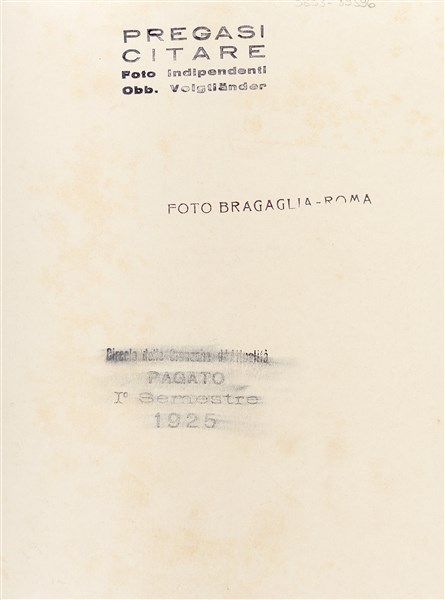 Timbro "Foto Bragaglia" e timbro "Foto indipendenti" al verso.