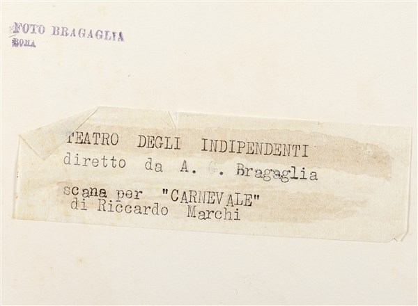 Timbro 'Foto Bragaglia' e cartiglio con dati al verso.