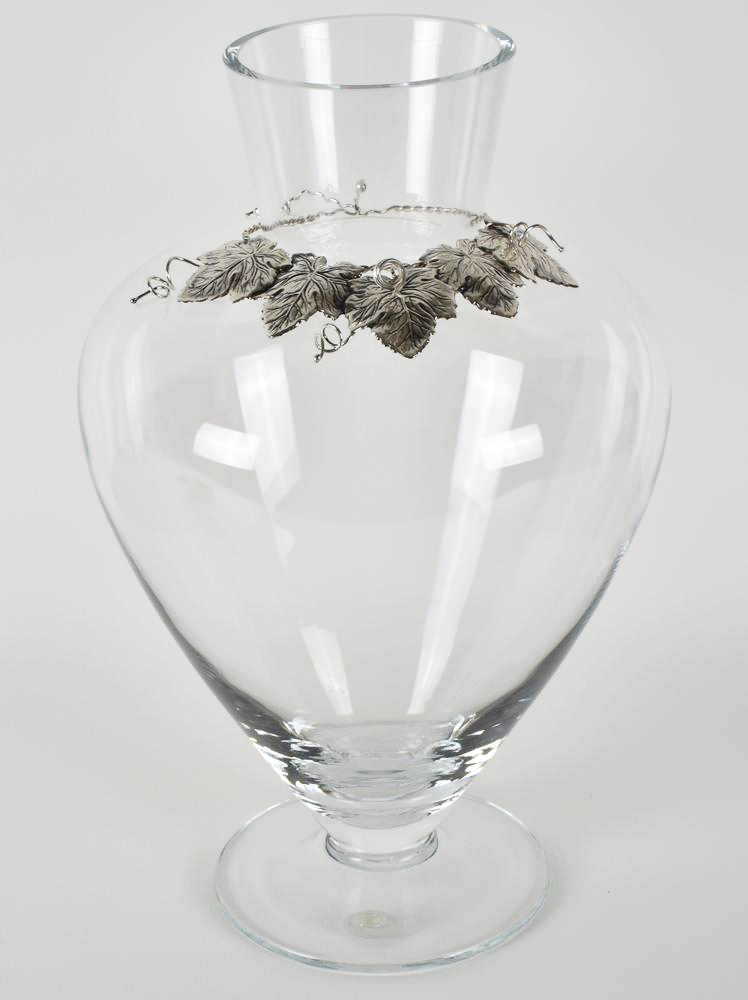 GRANDE VASO IN VETRO con decorazione in argento Sterling 925 alt. cm 41
