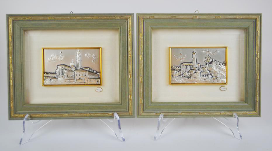 LOTTO DI DUE BASSORILIEVI realizzati su lamine in argento, punzone 925,...