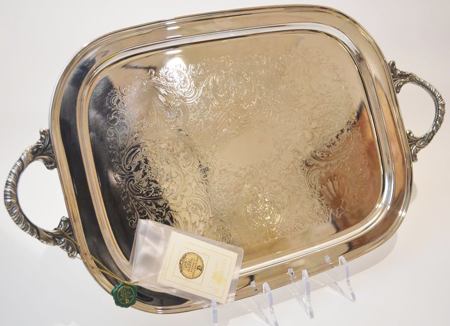 VASSOIO IN ARGENTO SHEFFIELD di forma ovale, cesellato a motivi vegetali e...