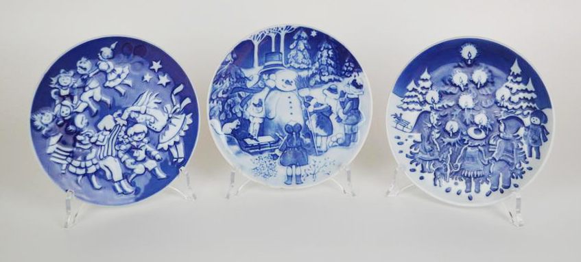 TRE PIATTI IN CERAMICA Royal Copenhagen, natale 1998, 1999, 2000 cm 17x17...