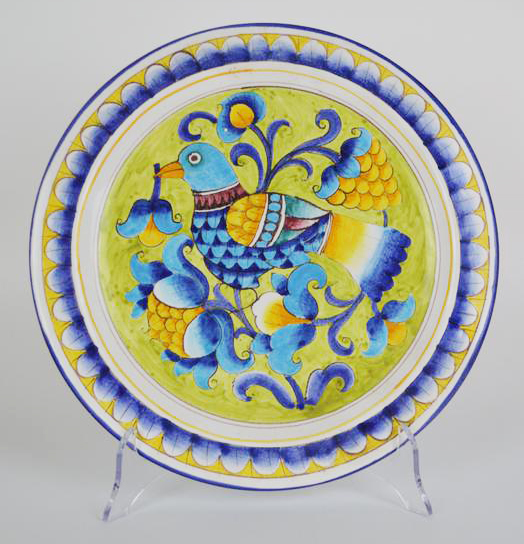 UN PIATTO IN CERAMICA dipinto a mano, al centro un volatile, cm 30x30 ottime...