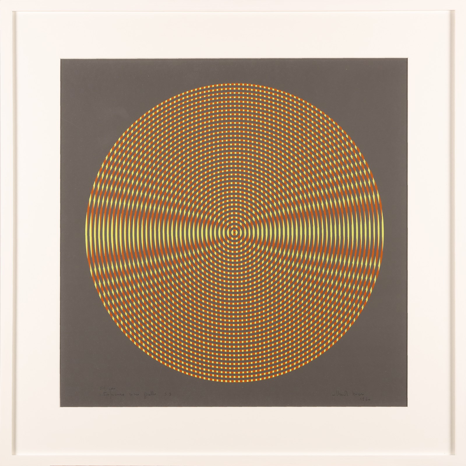 BIASI ALBERTO (n. 1937) Progetto S3, interferenza rosso e giallo su sfondo grigio. 1970. Serigrafia su cartoncino mat. Cm 47,50 x 47,50. 84/100.Tiratura, titolo, firma e anno a matita in basso. Giuseppe Strano Editore, Padova. . Cornice presente