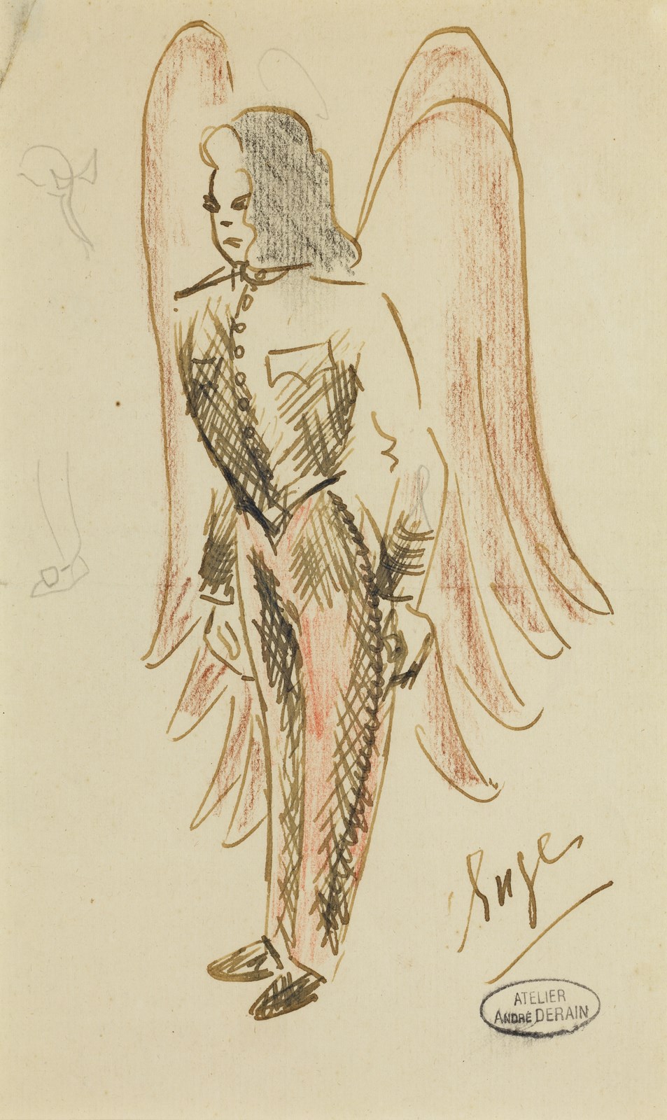 DERAIN ANDRE' (1880 - 1954) Senza titolo. Tecnica mista su carta. Cm 12,00 x 20,00. Firma e timbro Atelier Andre' Derain in basso a destra. Lievi difetti. Cornice presente