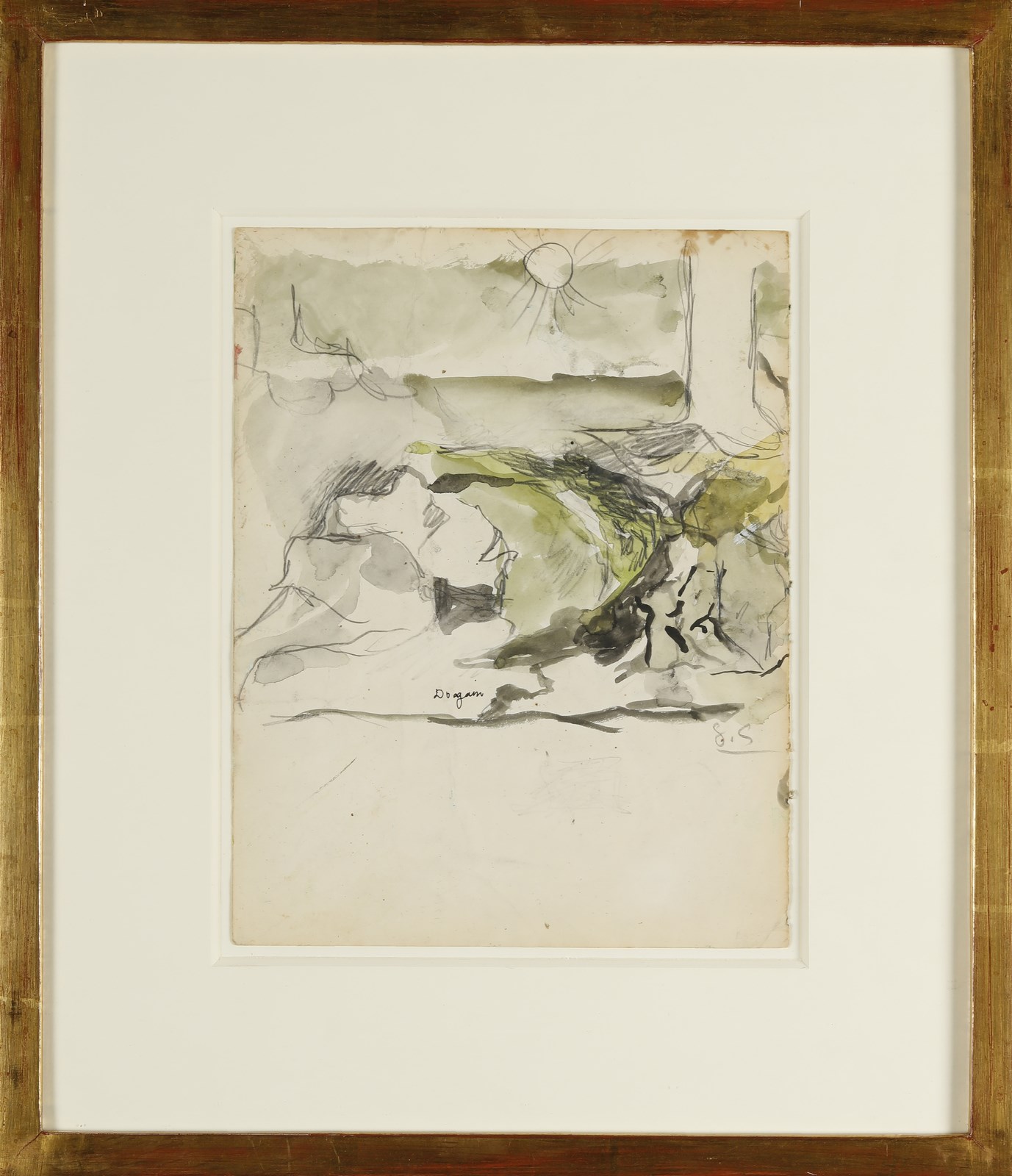 SUTHERLAND GRAHAM (1903 - 1980) Pagina di sketch-book. 1975. Acquarello su carta. Cm 17,50 x 22,50. Firma in basso a destra. Opera archiviata presso l'Archivio delle opere di Graham Sutherland presso Ruggerini e Zonca, Milano, come da documentazione fotografica allegata all'opera riportante il relativo numero d'inventario.. Cornice presente