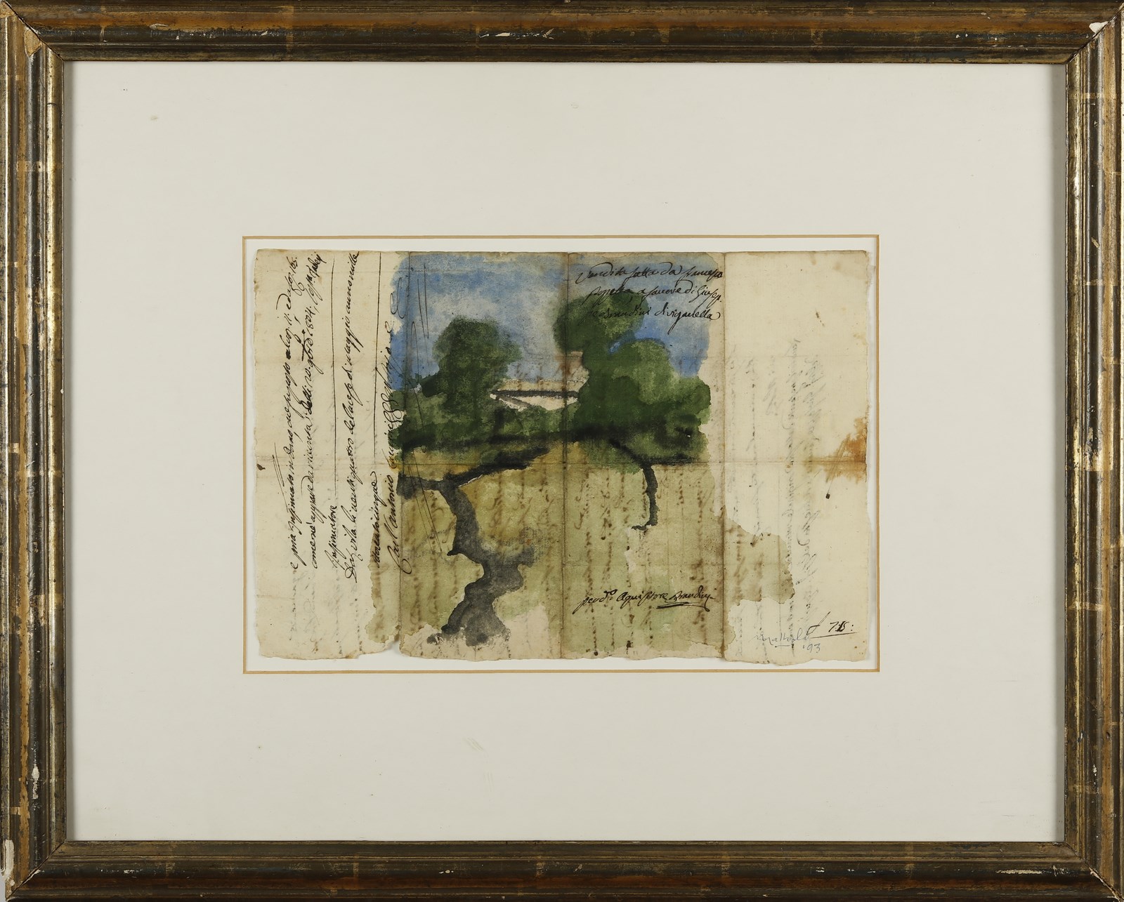 MATTIOLI CARLO (1911 - 1994) Paesaggio. 1993. Tempera su carta. Cm 30,00 x 20,00. Firma e anno in basso a destra. Autentica su fotografia di Marcello Mattioli. Cornice presente