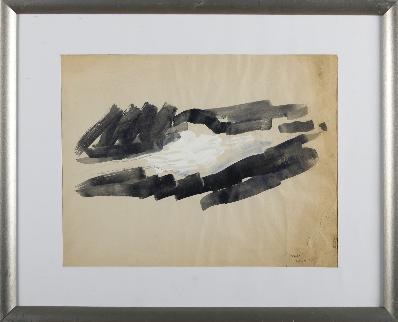 RACITI MARIO (n. 1934) Nube. 1966. Tecnica mista su carta. Cm 38,00 x 29,50. Titolo, firma e anno in basso a destra. Firma e anno in alto a destra. Al retro cartiglio descrittivo Luca Sforzini Arte. Difetti. Cornice presente