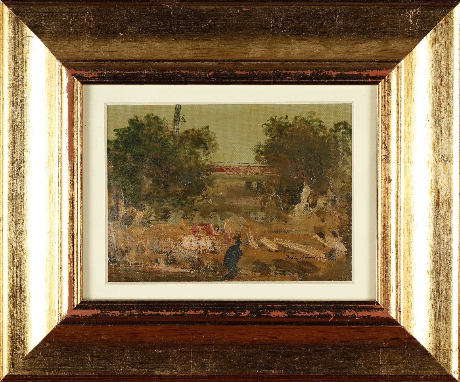ANNIGONI PIETRO (1910 - 1988) Senza titolo. Olio su tela . Cm 20,00 x 14,50. Firma in basso a destra. Cornice presente