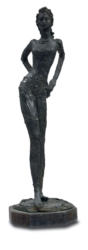 Bruno Innocenti Firenze 1906 - 1986 Bagnante Scultura in bronzo, cm. 83 h. Bruno Innocenti nasce a Firenze il 4 febbraio 1906. Allievo di Libero Andreotti, ne diviene più tardi assistente e, alla sua morte, ne prende il posto come cattedratico di scultura all'Istituto d'Arte di Firenze, dove continua a insegnare fino al 1975. A partire dal 1925, comincia a partecipare a rassegne in Italia (Firenze, Torino, Milano, le Quadriennali di Roma e le Biennali di Venezia) e all'estero (Parigi, Nizza, Atene, Monaco, Vienna, Varsavia, Bucarest, Budapest, Sofia, Sidney, Düsseldorf, New York, Sudafrica). Tra il 1925 e il 1949 tiene anche numerose personali in varie città italiane; la Biennale di Venezia del 1938 gli dedica una sala. Nel 1946 soggiorna a New York per circa un anno, e vi tiene una personale alla Architectural League; alcuni anni più tardi espone ancora a New York al Metropolitan Museum. A partire dagli anni Cinquanta sospende l'attività espositiva e si dedica completamente alla propria produzione artistica e all'insegnamento. Lavora anche ad alcune opere di carattere monumentale: al Palazzo di Giustizia di Milano, alla sede della "Centrale" di Milano, alla serie di Crocifissi per il Palazzo di Giustizia di Pisa, alla campana "Assunta" per il campanile di Giotto a Firenze, a varie opere di carattere funerario in Italia e negli Stati Uniti e alla grande statua del Redentore a Maratea. Nel 1971 torna a esporre alla Galleria La Gradiva di Firenze e in alcune rassegne in Francia, e partecipa alla mostra del Bronzetto di Padova. Nel 1985 l'Accademia delle Arti del Disegno di Firenze, di cui è accademico residente, organizza una mostra di suoi disegni e sculture. Dopo la sua scomparsa, avvenuta a Firenze nel 1986, sue opere vengono esposte alla mostra "Tridente Tre" alla Galleria dell'Oca e a diverse altre mostre a Firenze, Milano, San Miniato e Bologna. Il Gabinetto Disegni e Stampe degli Uffizi, al quale aveva donato circa novecento suoi disegni degli anni Venti, ha organizzato nel 1991 una mostra di suoi disegni e sculture. Un gruppo monumentale di sette statue, Apollo e le Muse, da lui eseguito nel 1933 per il Teatro Comunale di Firenze, è stato recentemente restaurato e ricollocato, ed è visibile nel foyer del teatro. Muore a Firenze il 3 ottobre 1986. Bagnante è un'opera in cui appare in modo evidente l'influsso di Andreotti, nel modellato rapido, quasi impressionista, delle superfici, e nella struttura longilinea del corpo, come in altre opere del maestro negli di anni formazione. Bibliografia Marco Fagioli, Bruno Innocenti scultore. Tra mito e liricità, Aión Edizioni, Firenze, 2009, n. 4.