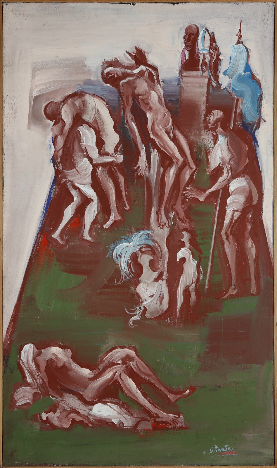 DI PRATA OSCAR (1910 - 2006) Senza titolo. Tecnica mista su tela. Cm 70,00 x 120,00. Firma in basso a destra,
