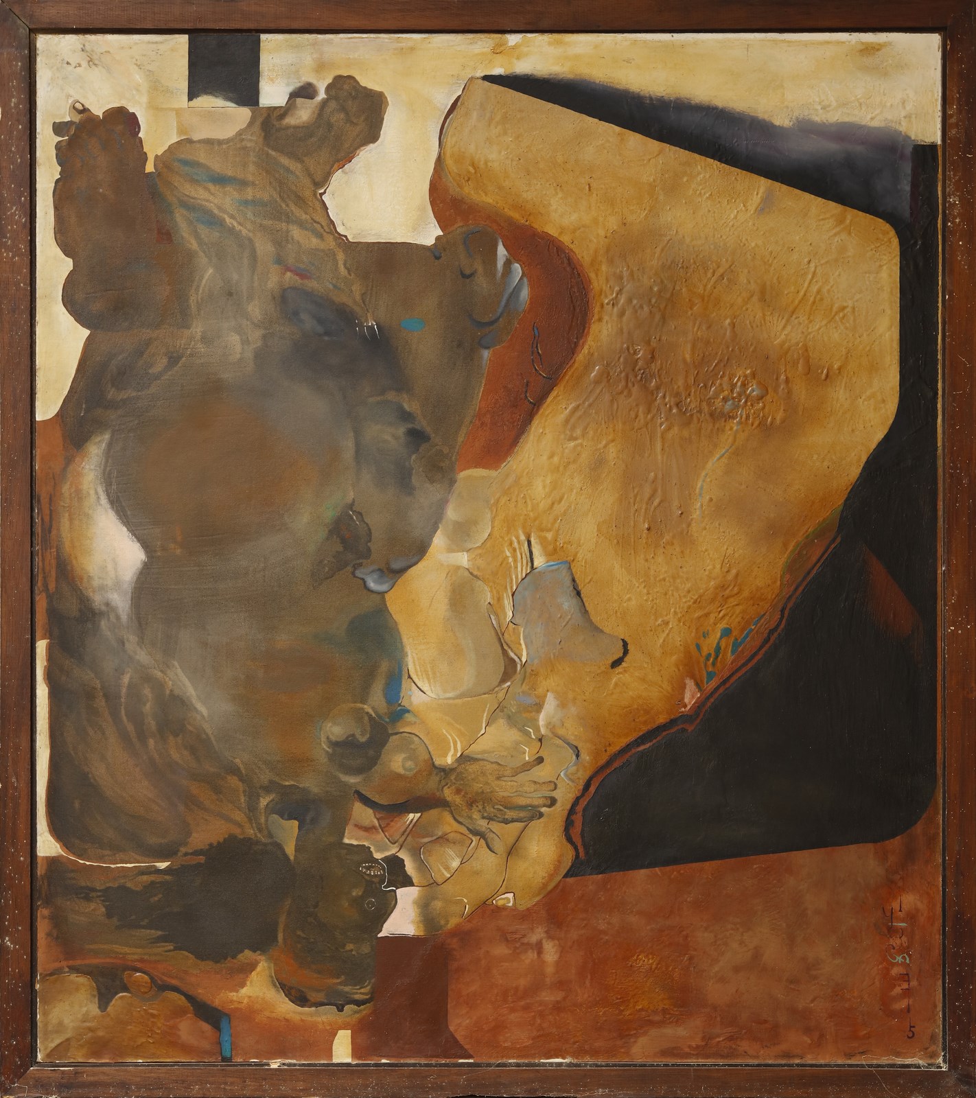FIESCHI GIANNETTO (1921 - 2010) Senza titolo. 1967. Olio su tavola. Cm 195,00 x 170,00. Al retro firma e anno. . Cornice presente