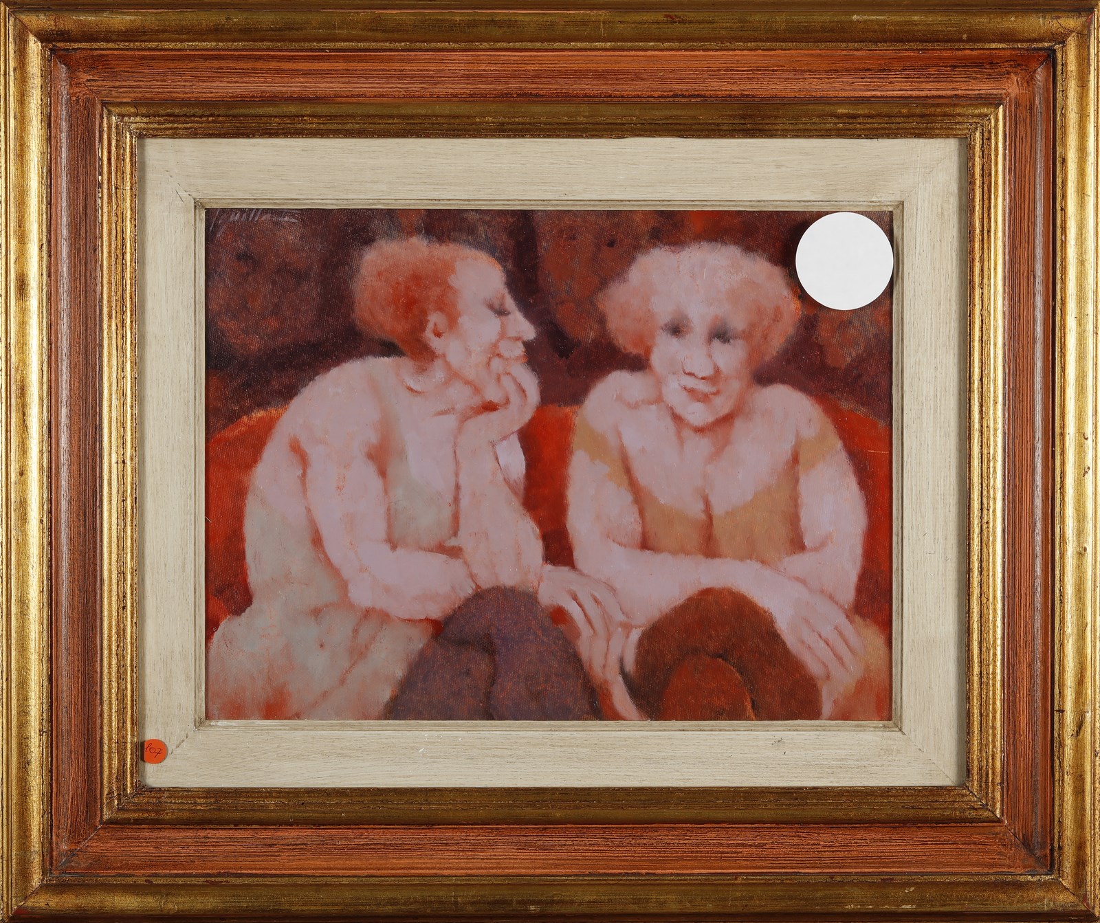 SQUILLANTINI REMO (1920 - 1996) Senza titolo. Olio su tavola applicata su tela. Cm 40,00 x 30,00. Firma in alto a sinistra. Autentica su fotografia di Giovanni Possenti. Cornice presente