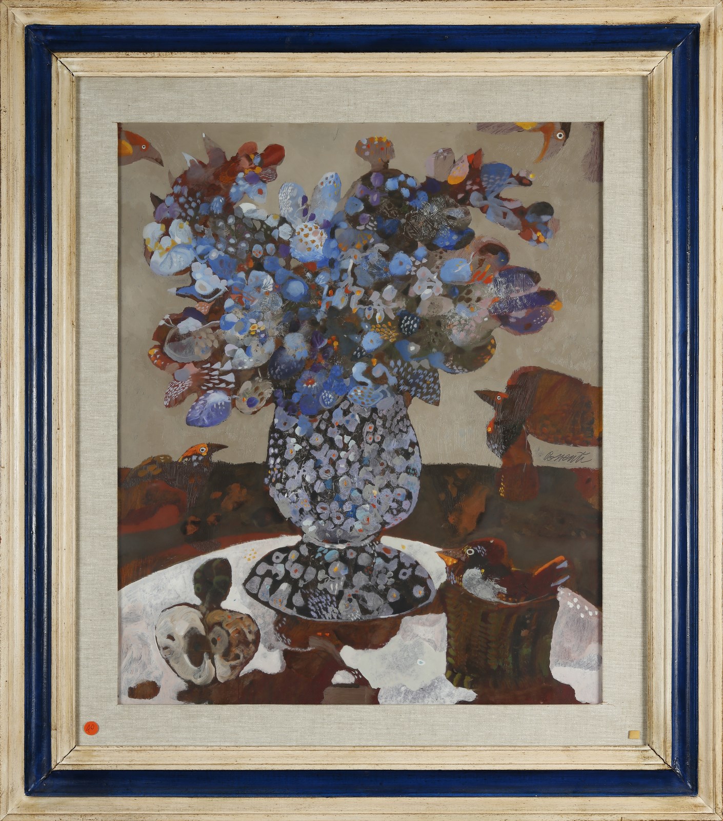 POSSENTI ANTONIO (n. 1933) Natura morta. Tecnica mista su tavola. Cm 50,00 x 60,00. Firma in basso a destra. Autentica su fotografia di Giovanni Possenti. Cornice presente