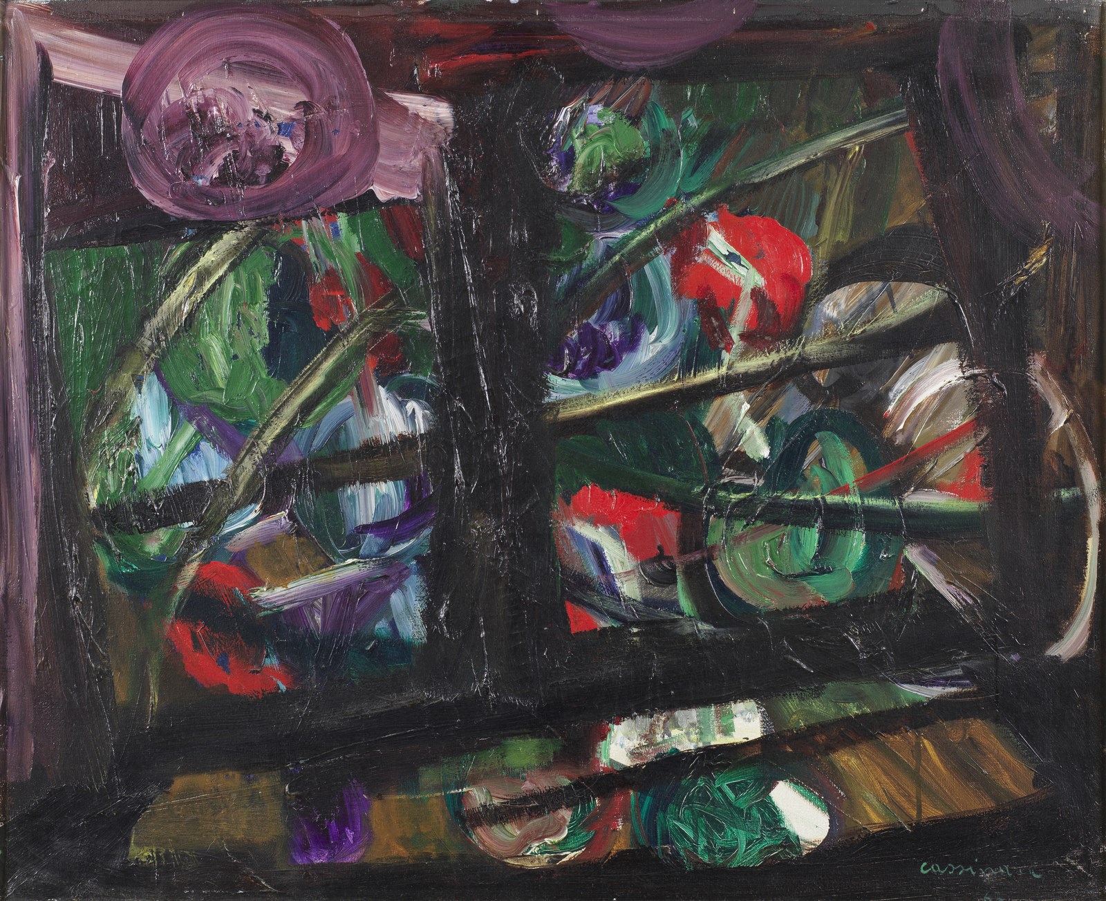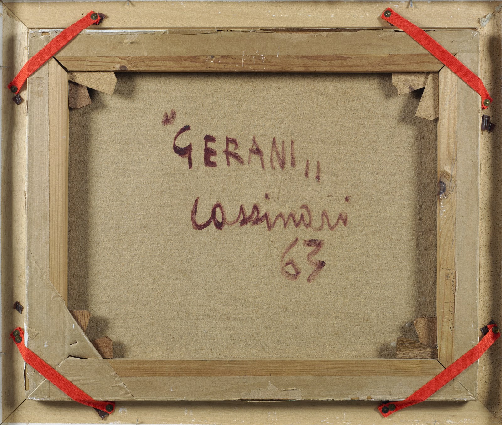 CASSINARI BRUNO (1912 - 1992) Gerani. 1963. Olio su tela . Cm 56,00 x 45,00. Firma in basso a destra. Al retro titolo, firma e anno. Opera archiviata presso l'archivio Bruno Cassinari come da documentazione fotografica allegata all'opera riportante il relativo numero d'inventario.