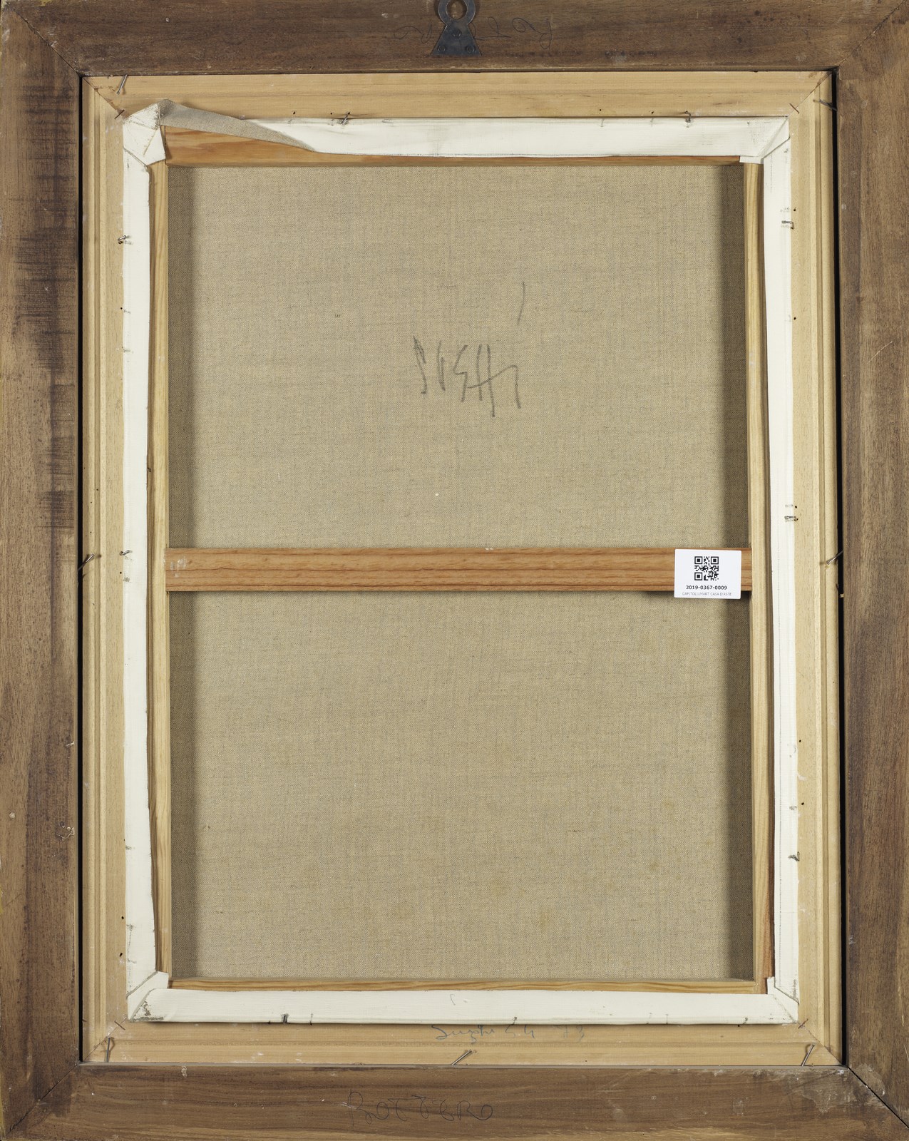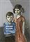 SUGHI ALBERTO (n. 1928) Ritratto di bambini dal ciclo Immaginazione e Memoria della Famiglia. 1981. Olio su tela . Cm 54,00 x 74,00. Firma in basso a destra e al retro. Opera archiviata presso l'Associazione culturale Archivio Sughi come da documentazione fotografica allegata all'opera riportante il relativo numero d'inventario. Pubblicazione: Alberto Sughi, Galleria del Corso, Latina, 28 Marzo 1982, tav.5. Cornice presente