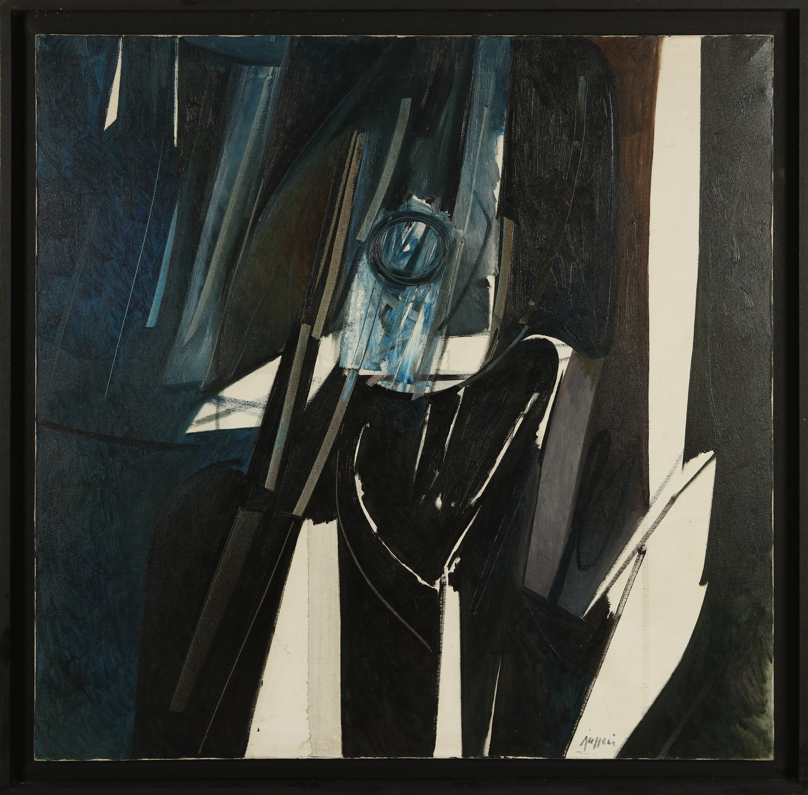 RUGGERI PIERO (1930 - 2009) Napoleone azzurro. . Olio su tela . Cm 100,00 x 100,00. Firma in basso a destra. Cornice presente