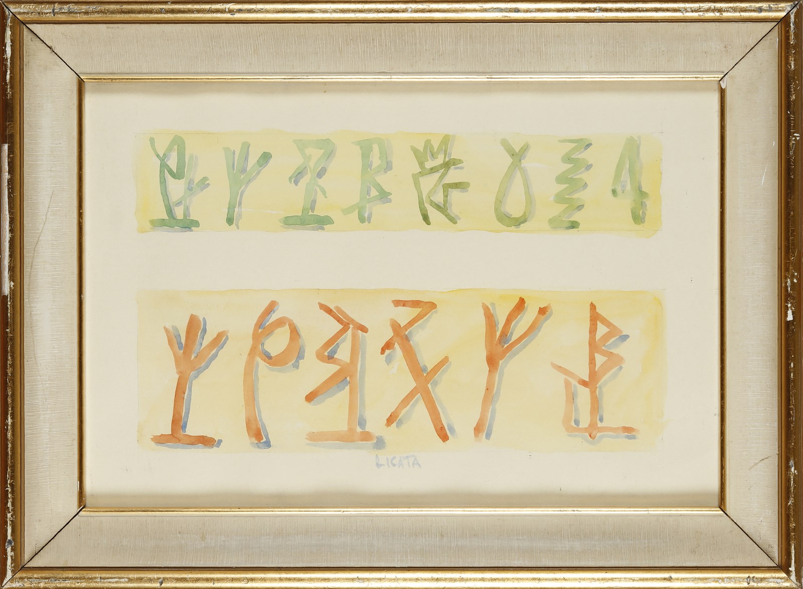 LICATA RICCARDO (1929 - 2014) Senza titolo. Acquarello su carta. Cm 38,00 x 26,00. Firma in basso al centro. Anni'90. Opera archiviata presso lo Studio Granzotto, Sacile come da documentazione fotografica allegata all'opera riportante il relativo numero d'inventario. Cornice presente
