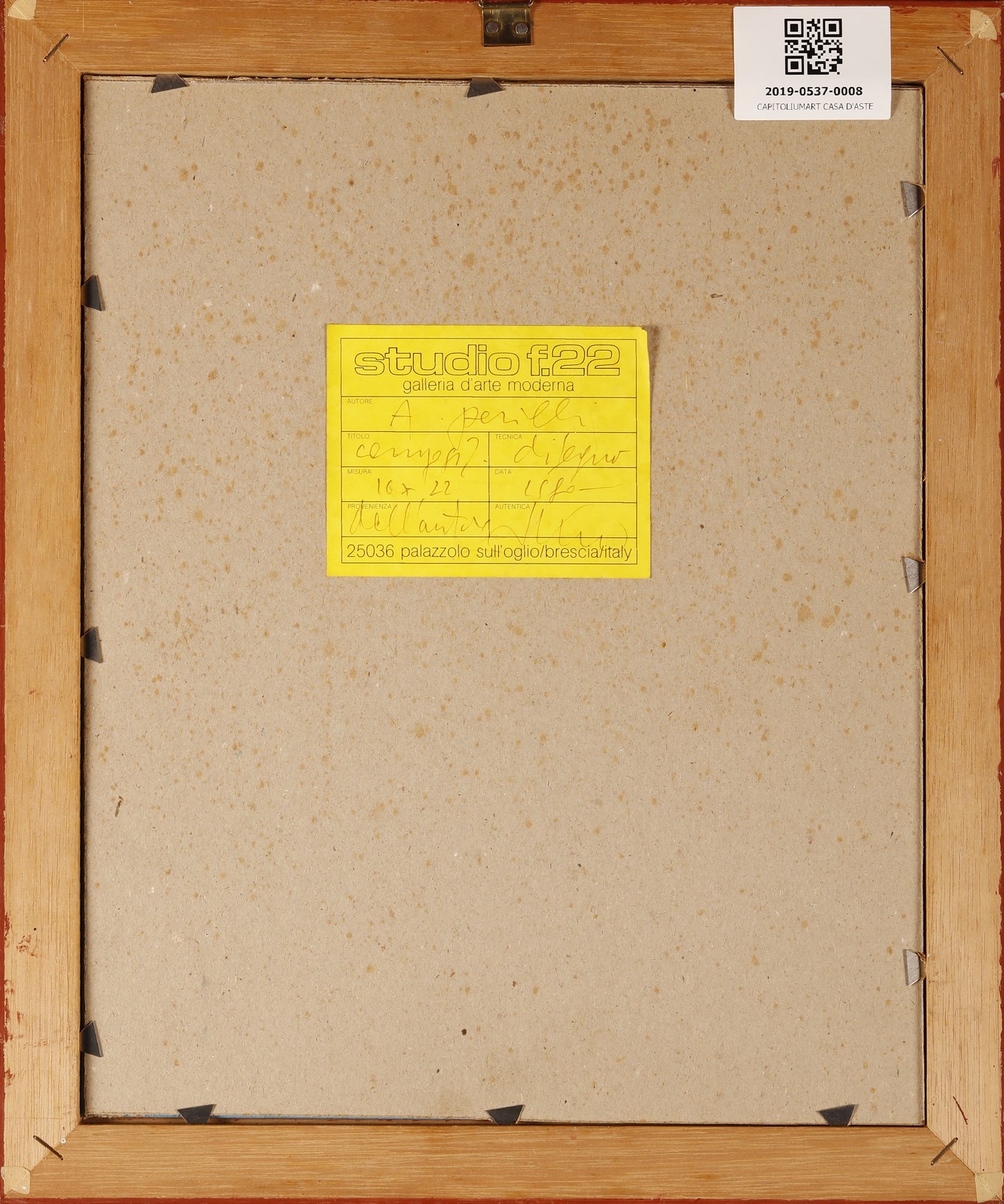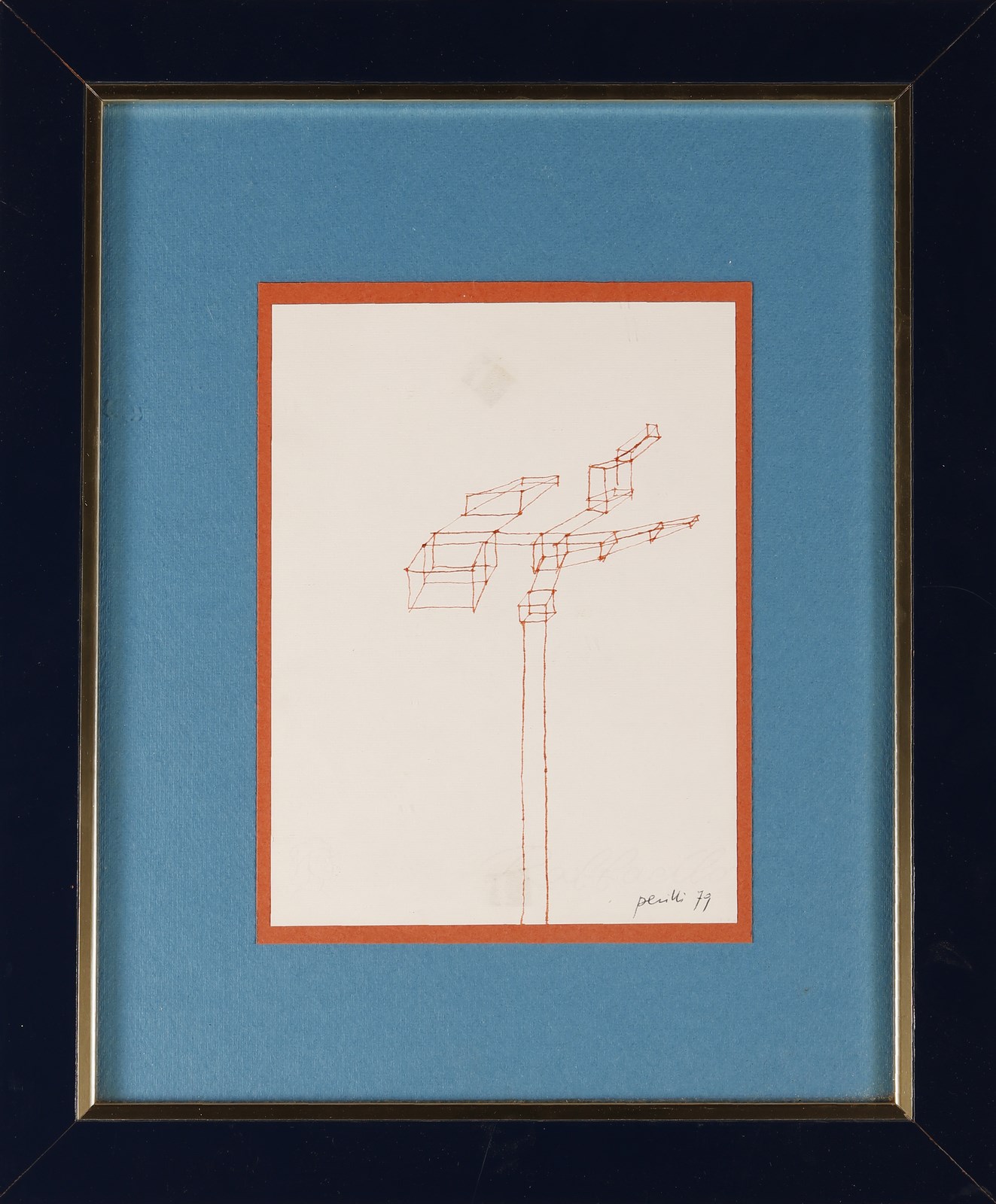 PERILLI ACHILLE (n. 1927) Composizione. 1979. Disegno su carta. Cm 16,00 x 22,00. Firma e anno in basso a destra. Filigrana Raffaello in basso a destra. Al retro cartiglio descrittivo Studio F22 Palazzolo sull'Oglio (Bs). Cornice presente