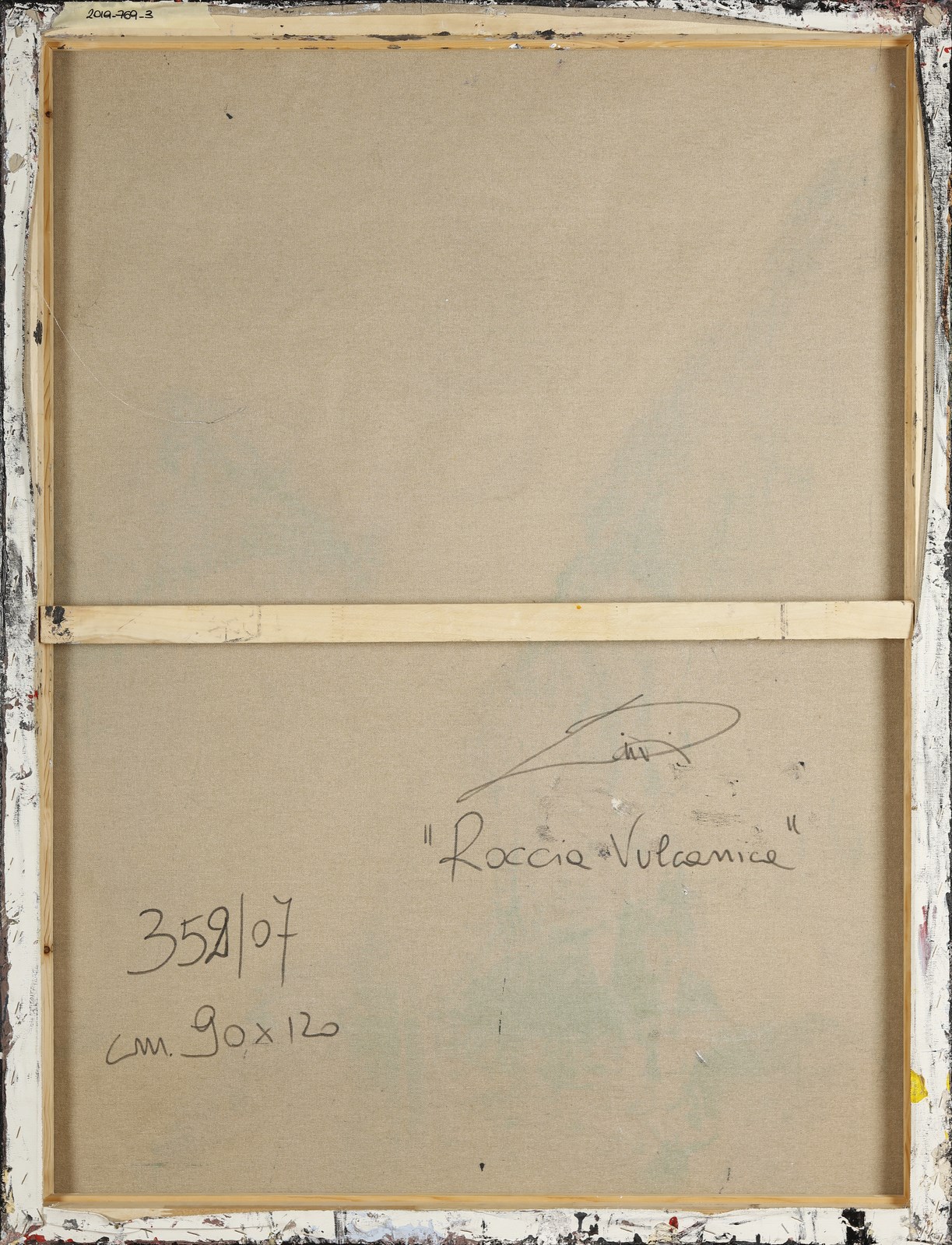 PIVA GIOVANNI (1912 - 1994) Roccia vulcanica. . Tecnica mista su tela. Cm 90,00 x 120,00. Al retro firma e titolo. Autentica dell'artista su fotografia riportante il relativo numero di inventario.