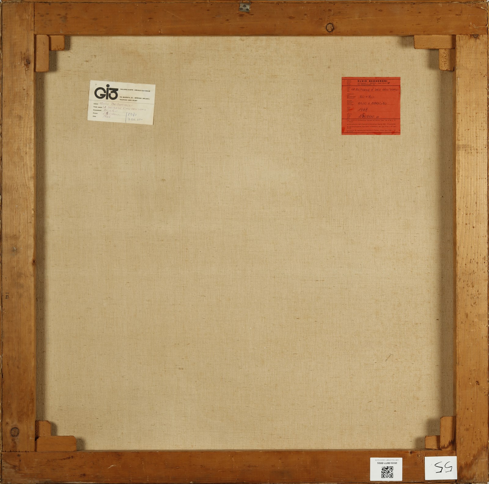 BECHERONI ELVIO (n. 1934) Senza titolo. Olio su tela . Cm 80,00 x 80,00. Al retro cartiglio descrittivo Galleria d'Arte-circolo culturale, Seregno.
