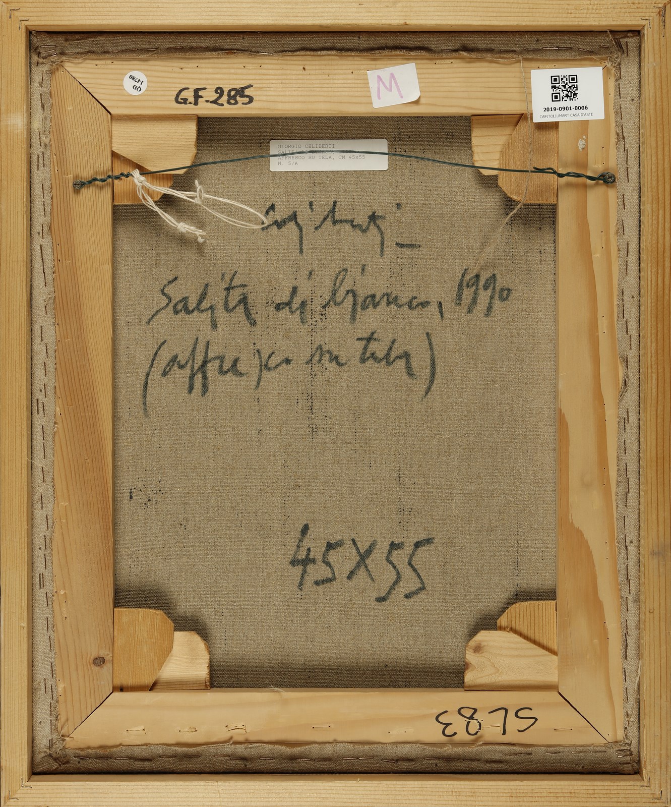 CELIBERTI GIORGIO (n. 1929) Salita di bianco. 1990. Affresco su tela. Cm 45,00 x 55,00. Al retro titolo, firma e anno. Autentica dell'artista su fotografia. Cornice presente