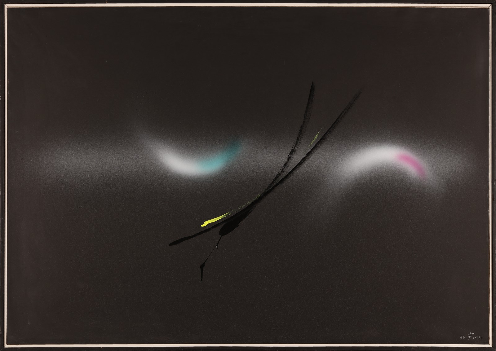FINZI ENNIO (n. 1931) Senza titolo. 1997. Tecnica mista su carta su tela. Cm 100,00 x 70,00. Firma e anno in basso a destra. Autentica dell'artista su fotografia. Cornice presente