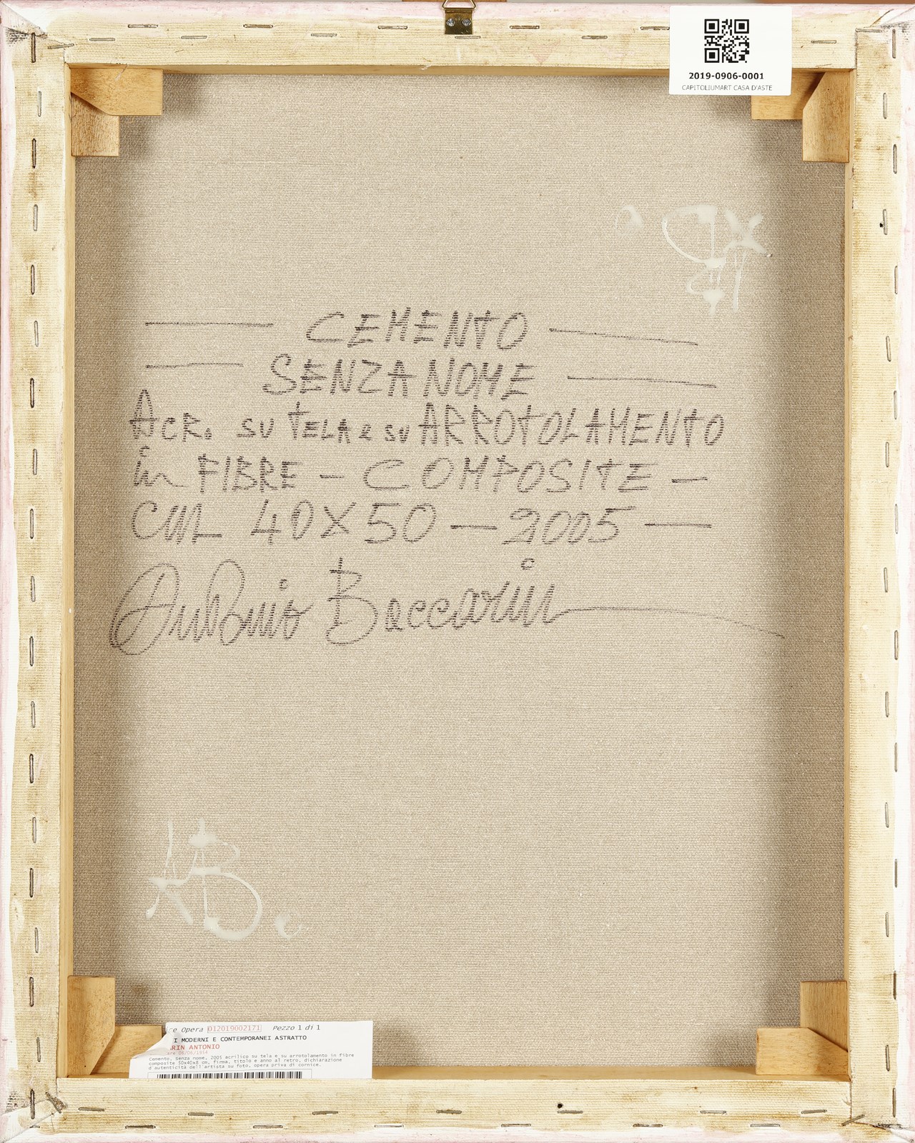 BACCARIN ANTONIO (n. 1954) Senza titolo. 2005. Tecnica mista su tela. Cm 40,00 x 50,00. Al retro firma e anno.