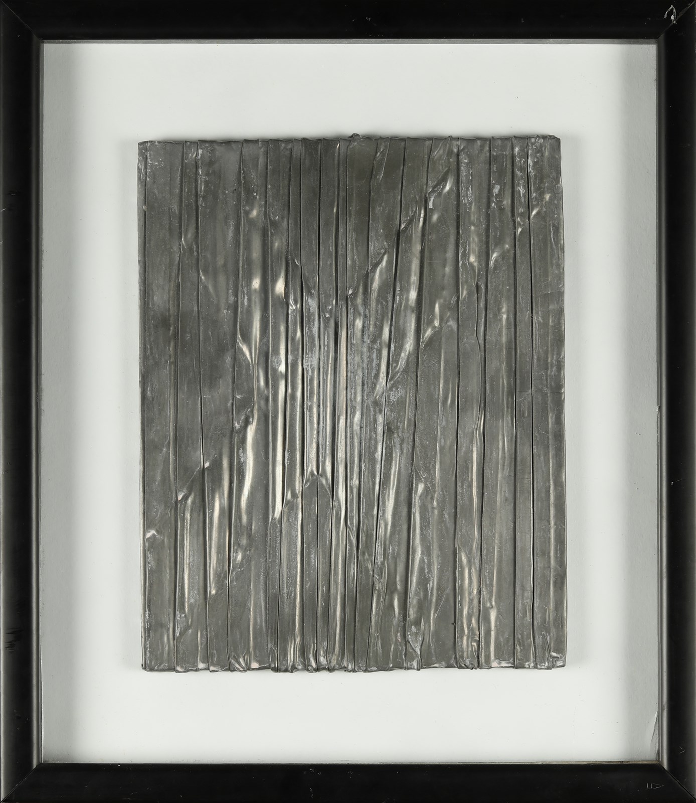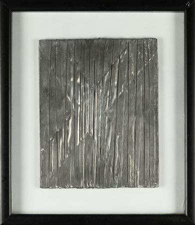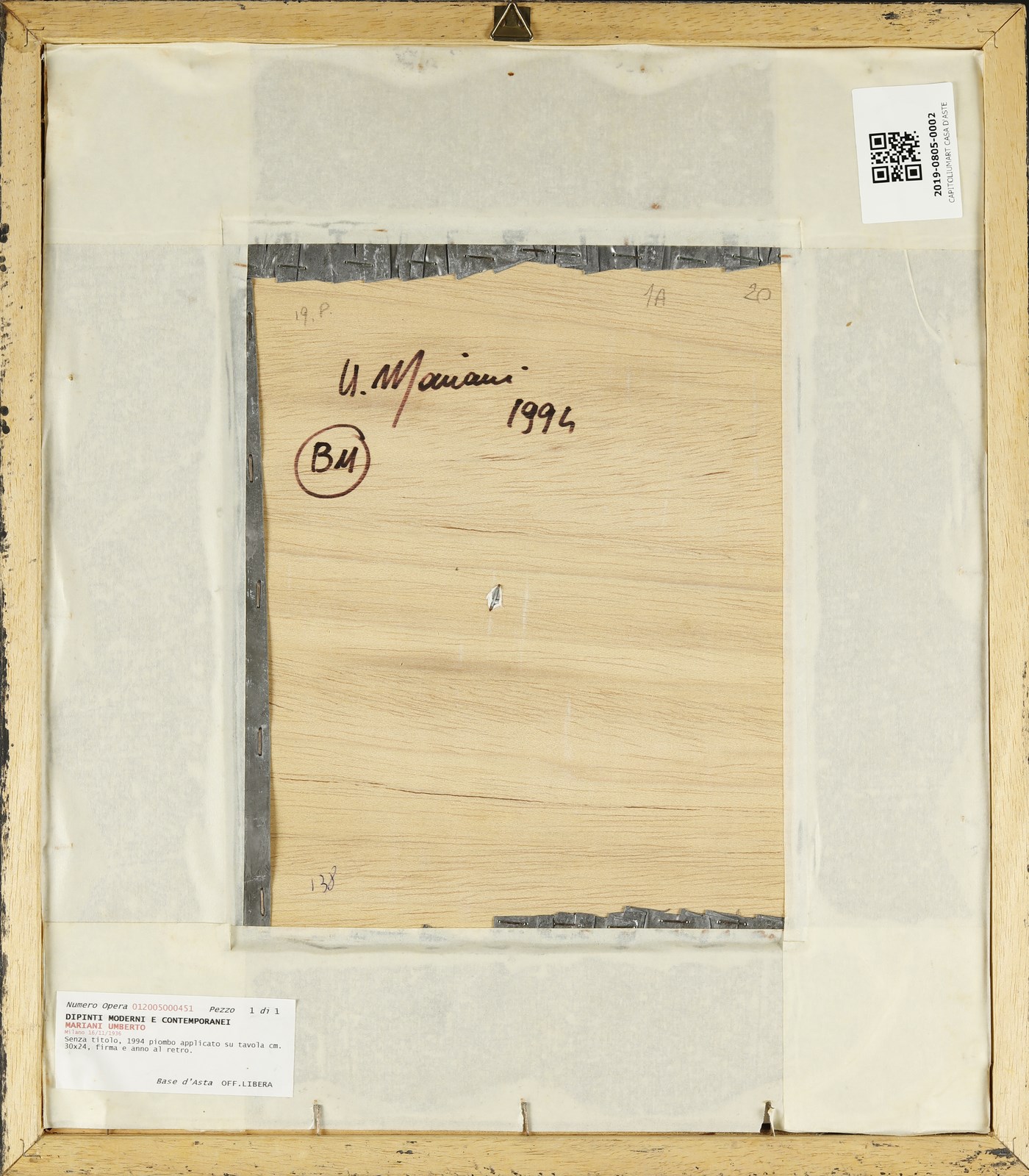 MARIANI UMBERTO (n. 1936) Senza titolo. 1994. Piombo su tavola. Cm 24,50 x 30,50. Firma e anno al retro. Cornice presente