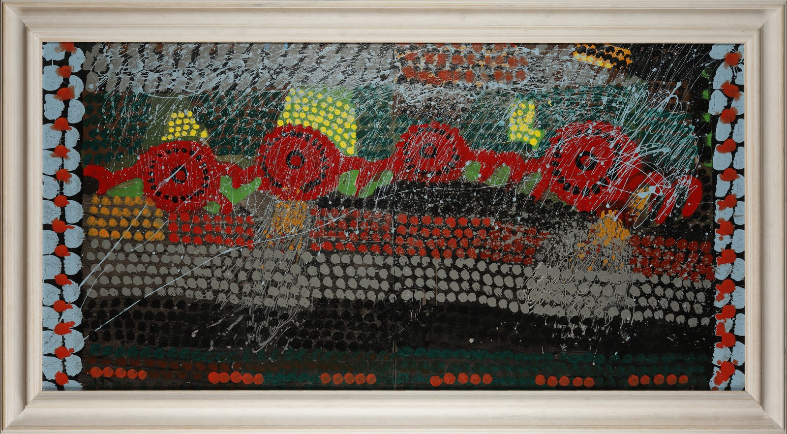 BIGGI GASTONE (1925 - 2014) Città sorgente. 2009. Tecnica mista su tela. Cm 140,00 x 70,00. Al retro titolo, firma e anno. Cornice presente