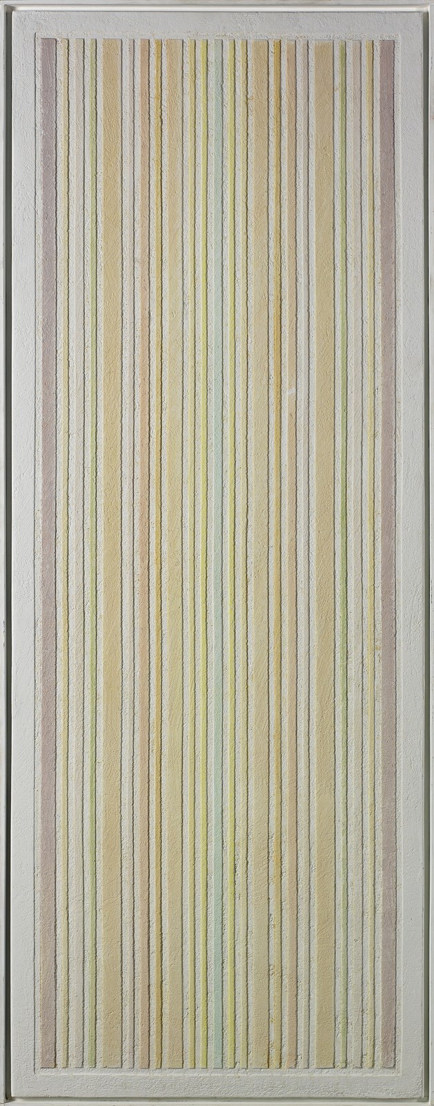 MARCHEGIANI ELIO (n. 1929) Grammature di colore. 2003. Tecnica mista su pannello. Cm 40,00 x 107,00. Al retro titolo e firma. Conferma scritta dell'artista (mail) sull'autenticità dell'opera. Pubblicazione: Elio Marchegiani - Ventuno grammi le grammature dell'anima a cura di Riccardo Ferrucci, 9 Aprile 2005, Pontedera.