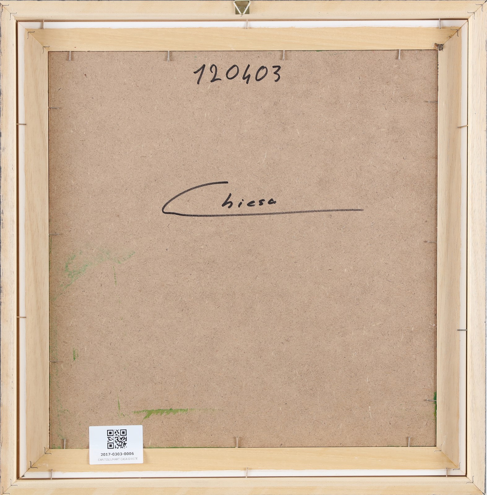 CHIESA RENATO NATALE (n. 1947) Sfere nere 5. 2012. Acrilico su tavola. Cm 40,00 x 38,05. Al retro firma. Opera archiviata presso Arte Capital, Milano, come da documentazione fotografica allegata all'opera riportante il relativo numero d'inventario con firma dell'artista.. Cornice presente