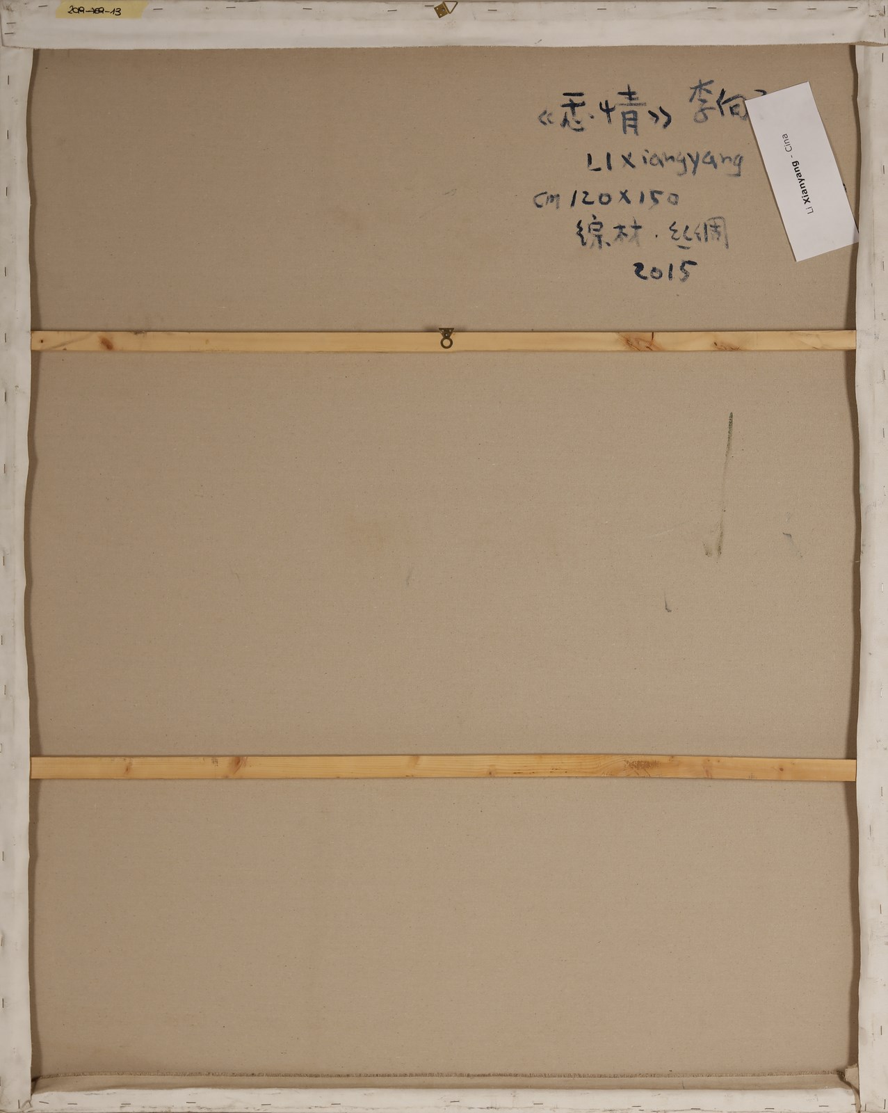 LI XIANGYANG (n. 1953) Senza titolo. 2015. Olio su tela . Cm 120,00 x 150,00. Al retro firma e anno. Esposizione: Li Xiangyang. Il battito per l'aria di una mano sola, a cura di Achille Bonito Oliva, Visionarea Art Space, 3 Maggio 2016 - 5 settembre 2016, Roma. Sitografia: http://www.visionarea.org