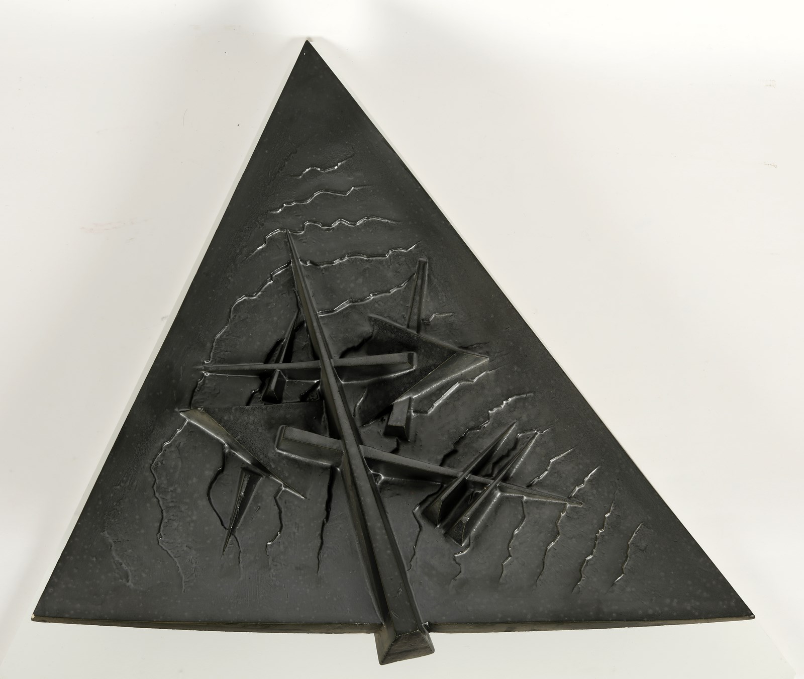 POMODORO ARNALDO (n. 1926) Senza titolo. 2003. Piatto in ceramica. Cm 59,00 x 57,00 x 64,00. 87/90. Firma al retro. Autentica dell'artista. Provenienza: Rossicone Arte, Milano. Lievi difetti.