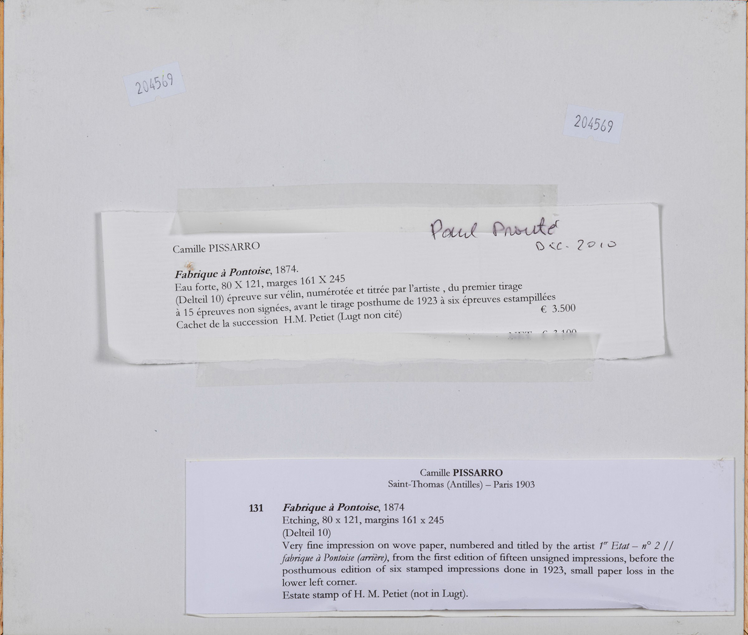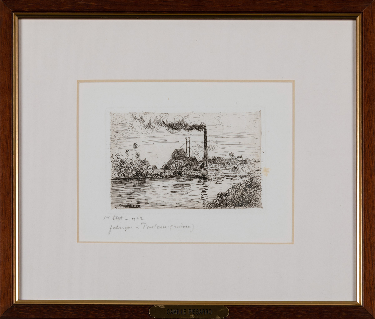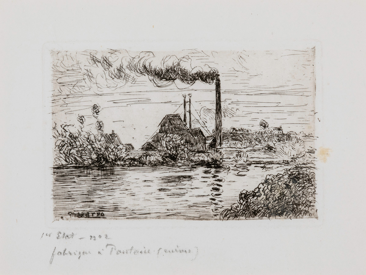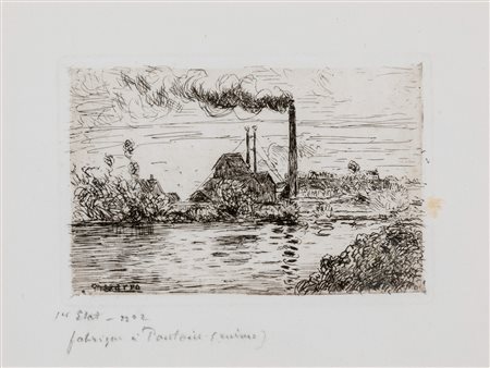 Camille Pissarro (1830-1903) Fabrique a Pontoise, 1874; acquaforte su carta, cm 12x16