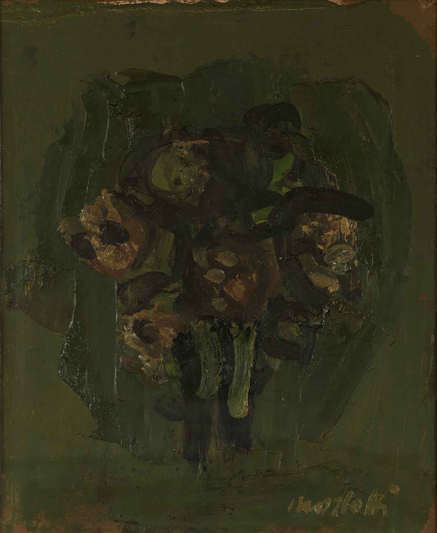 Ennio Morlotti (1910-1992) Girasoli; olio su tela, cm 40x35