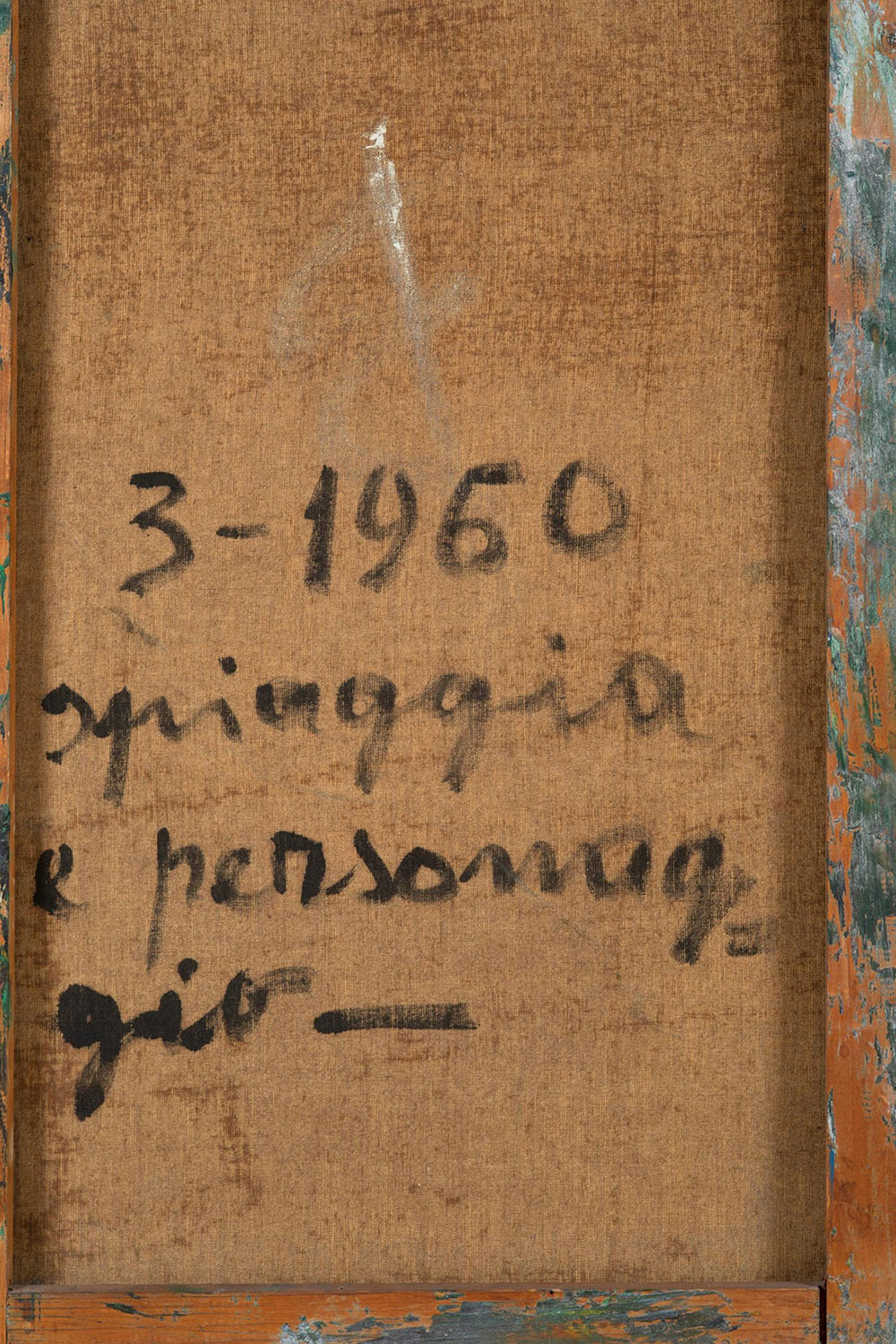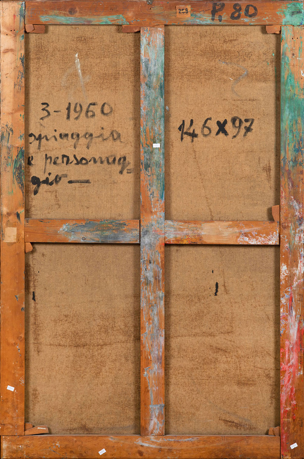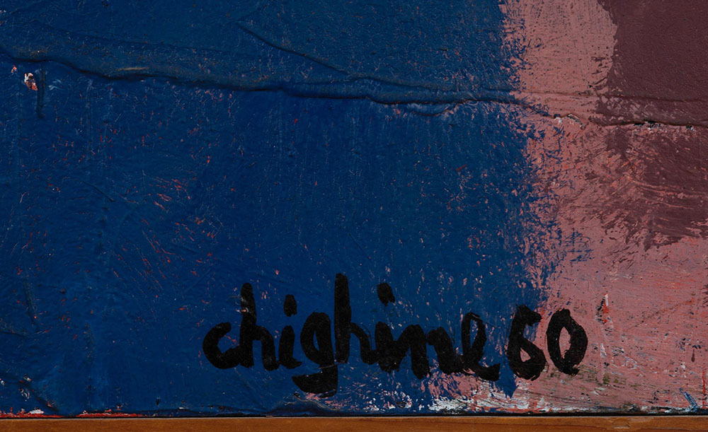 intitolato e datato al retro; L’opera presenta craquelure con sollevamento del colore dovuto ad un colpo ricevuto dal retro, piccola mancanza nella parte centrale del bordo inferiore (sul colore blu)