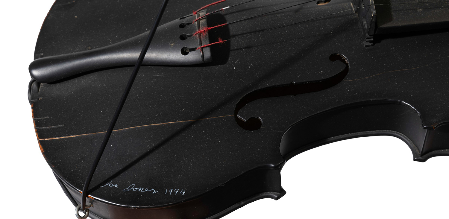Joe Jones (1934-1993) Violino, 1974; legno verniciato e motorino a batteria, cm 83x80x15