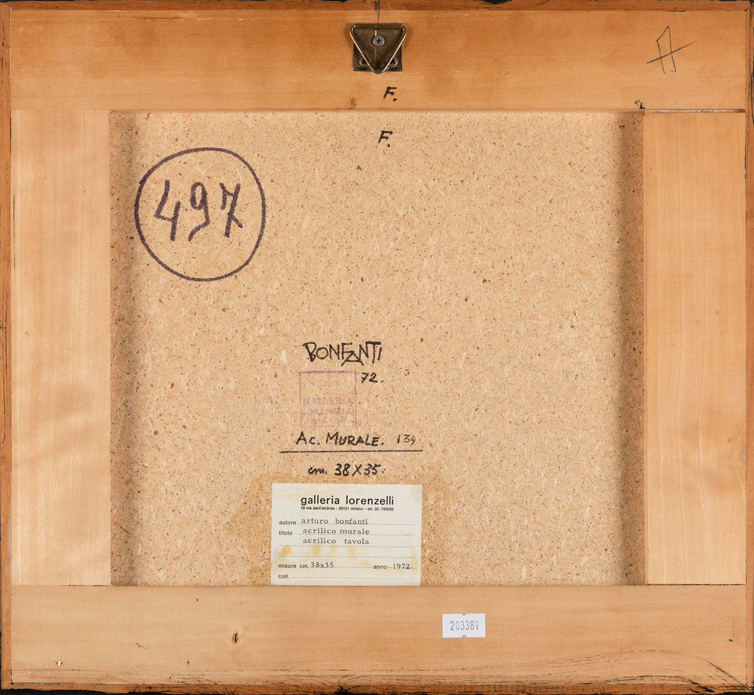 Etichetta e timbro al retro della Galleria Lorenzelli, Milano;